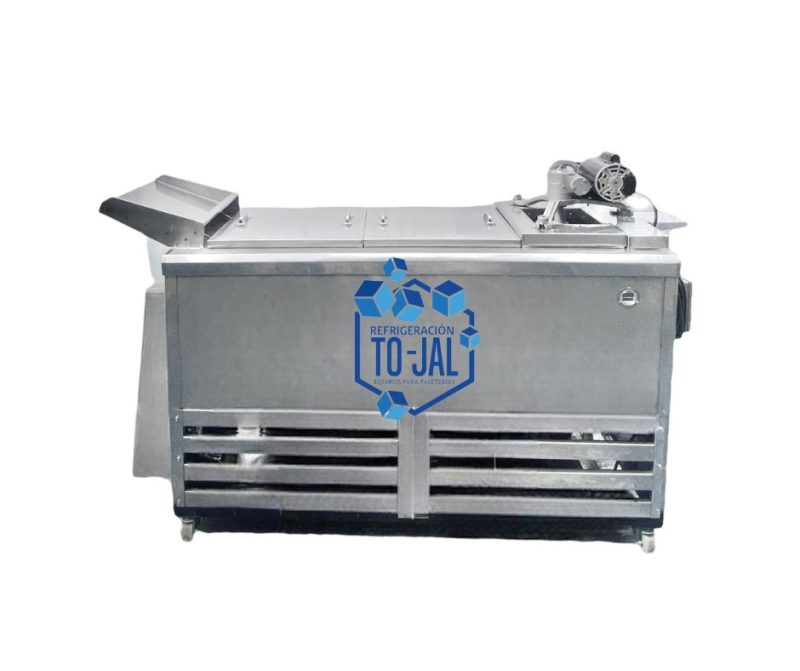 Fabricado en acero inoxidable, lamina cedula 304 certificada y de primera calidad, material grado alimenticio, en 1 sola pieza no hay uniones, sin remaches ni por dentro ni por fuera, calibre 18, tapas aisladas con espuma de poliuretano, serpentín de cobre 3/4 la mejor calidad, maquina en refrigerante 404ª ecológico especial para baja temperatura, ahorrador de energía, agitador que provoca la turbulencia del agua así el molde cuaja más rápido, malla higiénica en acero inoxidable para congelar bolis y termómetro para medir la temperatura.